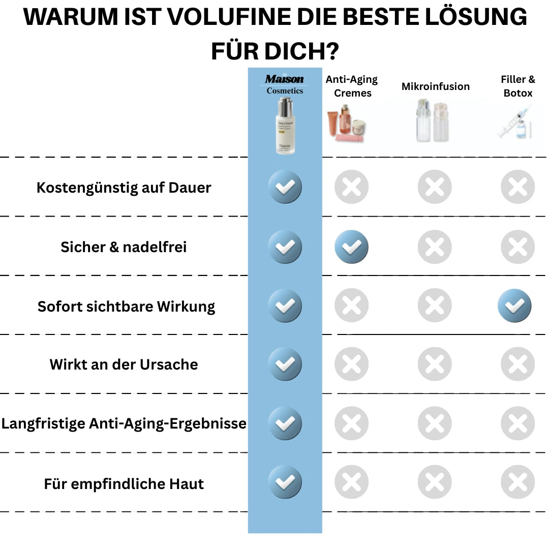 Während herkömmliche Seren hauptsächlich hydratisieren, wirkt VoluFine™ dort, wo die Haut mit der Zeit Volumen verliert: